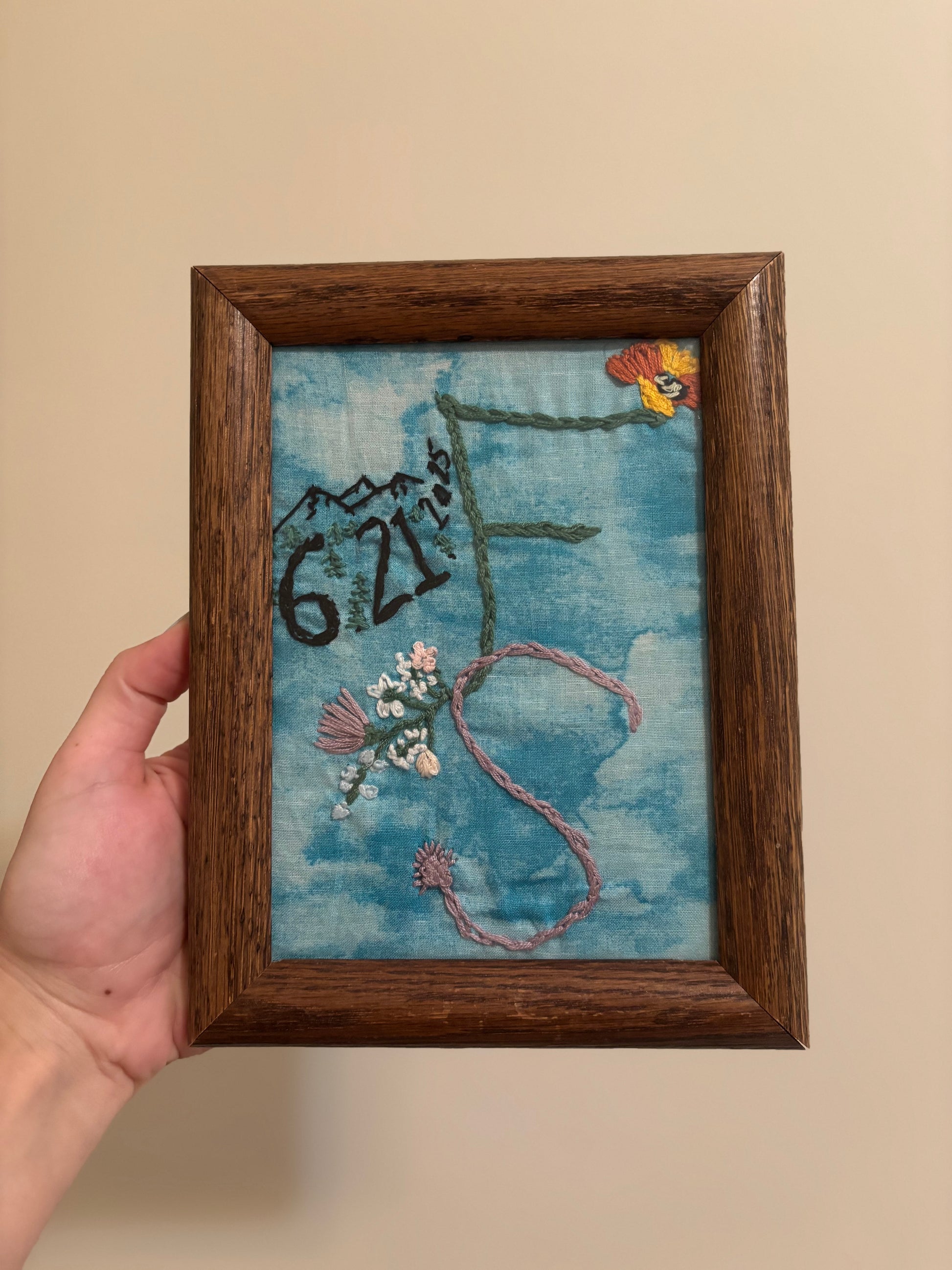 It’s wedding season! What better way to memorialize a special day than with a custom framed embroidery design? Basic initials + wedding date with small embroidery design in 6x8” wood frame starts at $25! Pick your background fabric color and embroidery colors.
